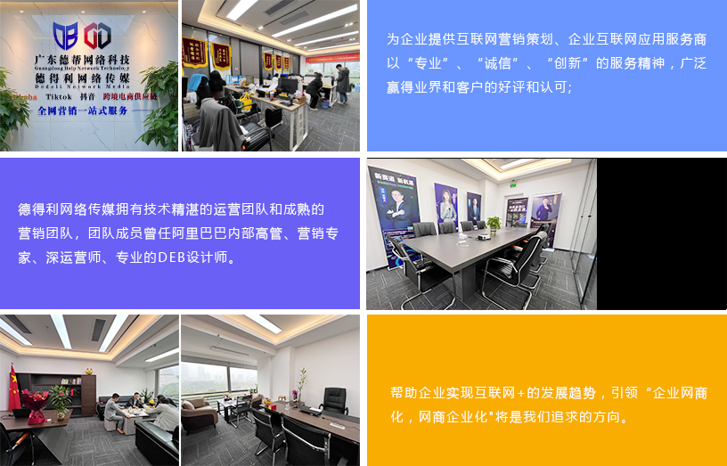 廣東德得利網(wǎng)絡(luò)傳媒有限公司是一家:為企業(yè)提供互聯(lián)網(wǎng)新媒體營(yíng)銷策劃、企業(yè)互聯(lián)網(wǎng)新媒體應(yīng)用服務(wù)商;以“專業(yè)、專注、專一、誠信、激情、敬業(yè)的服務(wù)精神,廣泛贏得業(yè)界和客戶的好評(píng)及認(rèn)可;這個(gè)時(shí)代,誰運(yùn)用好互聯(lián)網(wǎng)+新媒體誰將搶占先機(jī);擁有技術(shù)精湛的運(yùn)營(yíng)團(tuán)隊(duì)和成熟的營(yíng)銷團(tuán)隊(duì),團(tuán)隊(duì)成員曾任阿里巴巴內(nèi)部高管、營(yíng)銷專家、資深運(yùn)營(yíng)師、專業(yè)的DEB設(shè)計(jì)師和抖音內(nèi)部運(yùn)營(yíng)操盤手